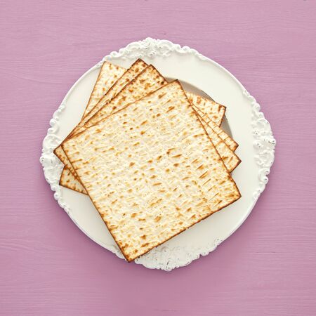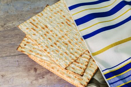 Traditional Jewish Matzah unleavened bread with a vintage background. Jewish Passover
