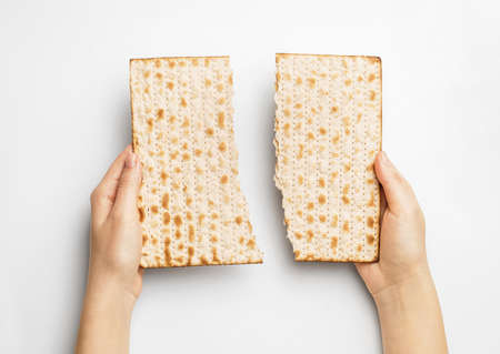 top view hands holding jewish cracker. High quality photo