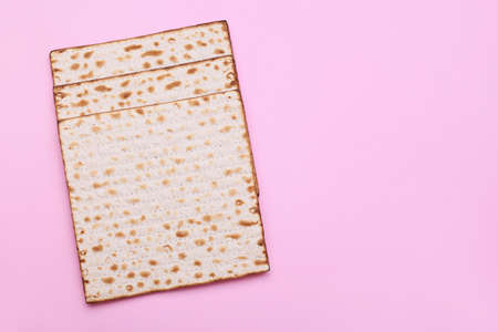Jewish flatbread matza for Passover on color background