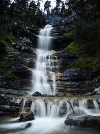 Beautiful waterfall in lower austria during spring in the forest - sebastian waterfall
