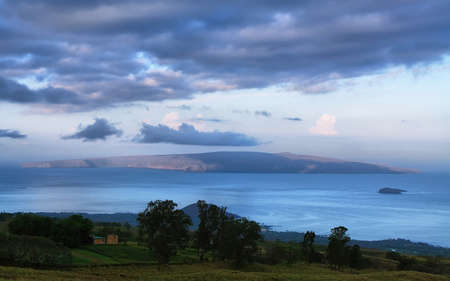 View at dawn of the island of Kahoolawe and the world-renowned snorkeling spot Molokini from Maui