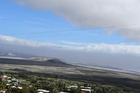 Panoramic view of the Mauna Loa volcano and old lava fields