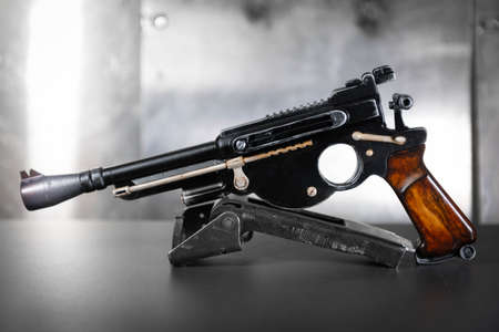 fragment of an old Parabellum pistol. Luger close up