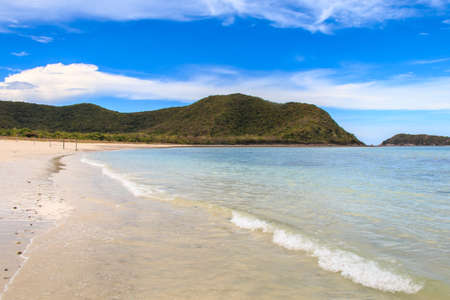 Beautiful scene on best desert beach with white sand, clear water on ocean bay Mawun in tropical island Lombok.