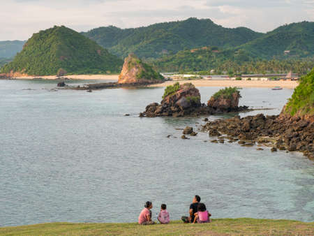 Family is wating for sunset in Putri Nyale Beach, Lombok, Indonesia