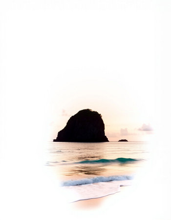 A stunning view of a tropical island featuring lush greenery and rocky formations, reflecting a tranquil environment perfect for travel and nature photography.