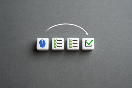 cubes with head symbols and hand that flips one revealing an idea