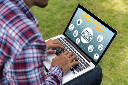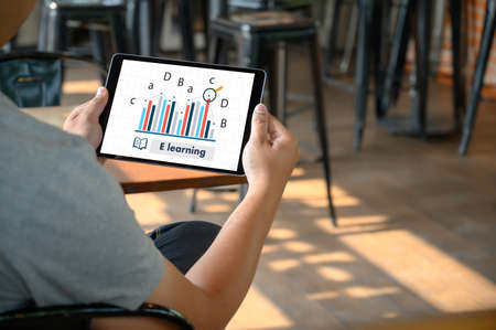 E-learning and Online Education for Student and University Concept. Graphic interface showing digital technology of remote learning from anywhere.