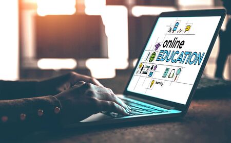 E-learning Internet Technology education concept online learning with webinars, video tutorials, internet lessons