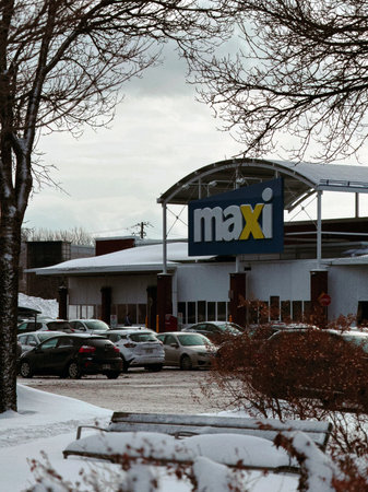 Facade of a Maxi grocery store in Quebec City during winter.