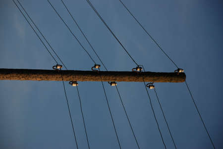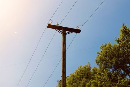 pole with electric wires. Background with copy space for text or inscriptions.