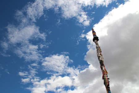 Prayer flags around a column at Shalu Monastery, Shigatse, Tibet