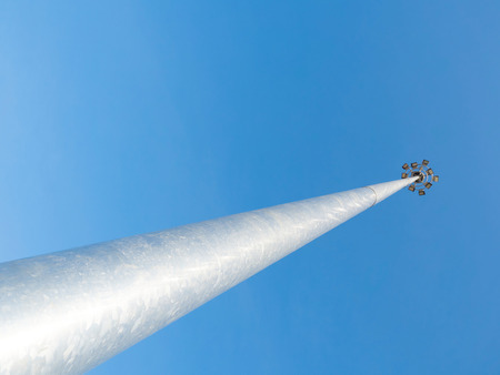high power electrical sport lamp, or spotlight on metal pole into the blue sky