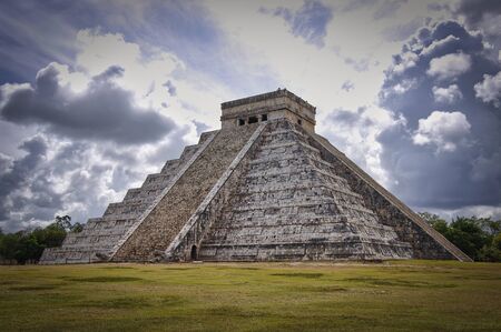 Great photo of the pyramid of Chichen Itza, Mayan civilization, one of the most visited archaeological sites in Mexico. About 1.2 million tourists visit the ruins every year.