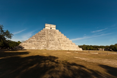 Early morning shadow of the pyramid Kukulkan in the Mayan archeological site Chichen Itza, Mexico