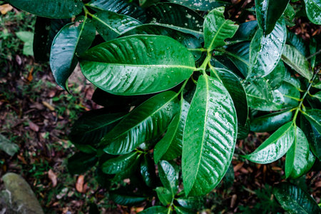 Carissa carandas and blur background,Rice leaves after rain.