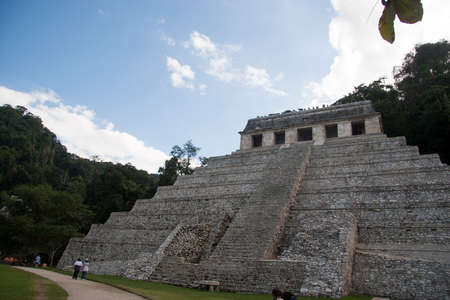Palenque, Chiapas / Mexico - 21/07/2019: Detail of the archaeological pre hispanic mayan site of Palenque in Chiapas Mexico