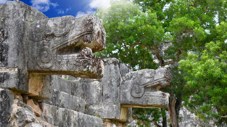 Ancient Mayan stone reliefs at Chichen Itza ruins in Yucatan, Mexico