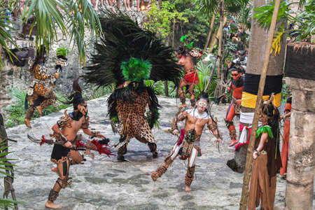 Xcaret Park- Riviera Maya -Mexico- Mayan dancers in the summer theater is a theme park, a resort and an ecotourism development located in the Riviera Maya, a portion of the Caribbean coast