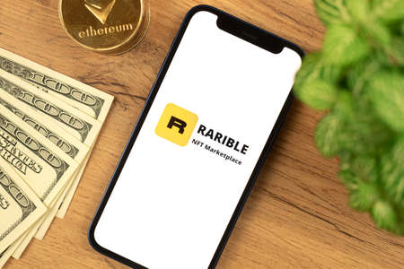 Kharkov, Ukraine - December 20, 2021: Rarible NFT marketplace open on mobile phone screen photo
