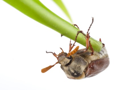 Summer chafer or European june beetle, Amphimallon solstitiale, in front of white background