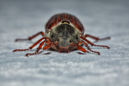 Amazing view of cockchafer beetle. Extreme close up. Shallow DOF