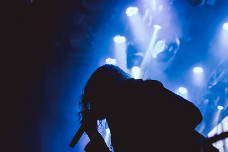 ARKHANGELSK, RUSSIA - APRIL 14, 2014: Silhouette of rock singer live on stage.