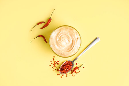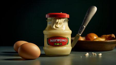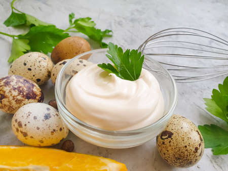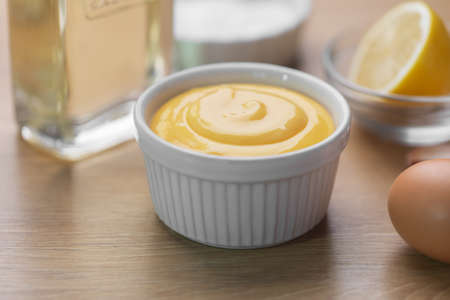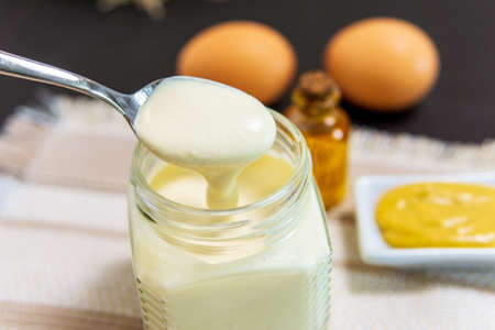 homemade mayonnaise sauce close-up selective focus. sauce ingredients