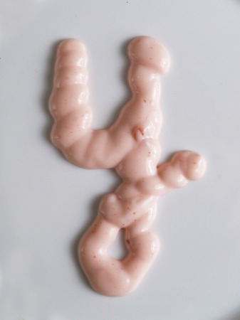 yoghurt strawberry pulp letter y isolated on white close up photo