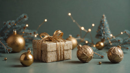 Soft-lit festive mockup combining subtle gold hues with deep emerald shadows.