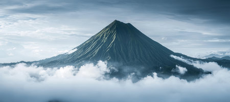 Mystical Volcano Peak in Clouds - Atmospheric Landscape for Posters and Prints