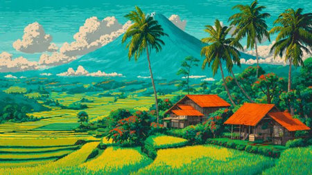 Rice terraces. Digital painting.
