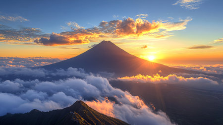 Colorful sunrise with Merapi volcano at Yogyakarta, Indoneisa