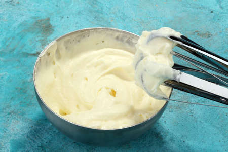 homemade egg mayonnaise on concrete background и