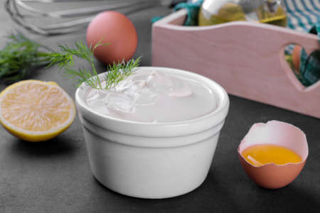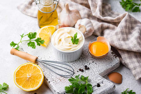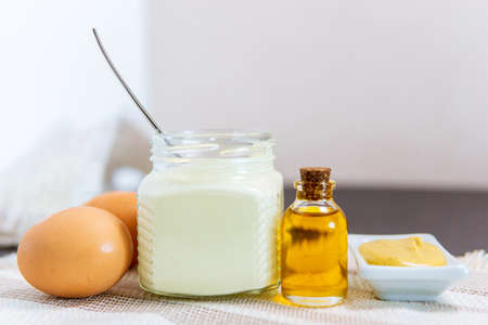 Homemade mayonnaise sauce with ingredient for cooking