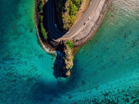 Aerial view of Mauritius island with beautiful lagoon