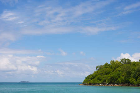 Beach on the tropical island with green water blue sky, koh rok of Thailand