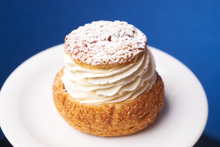 Choux with chestnut filling ad Chantilly cream on the cream stand