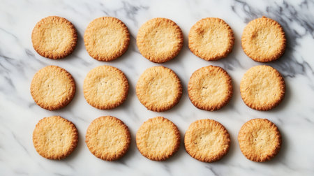 Square biscuits arranged in pattern on light textured background, close-up, shallow depth of field, selective focus.