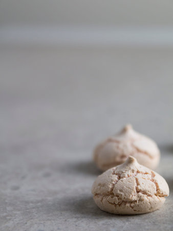 Tasty almond cookies arranged on white textured background, close-up, selective focus. Delicious homemade biscuits. Amaretto biscotti. Yummy confectionary. Food concept.
