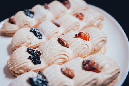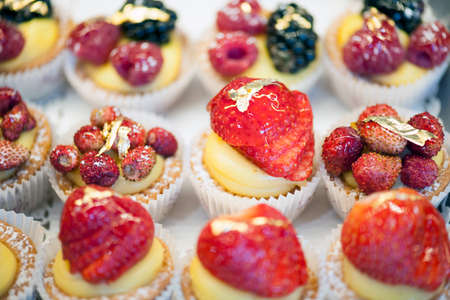 Delicious artisan desserts prepared in an Italian pastry shop. Selective focus