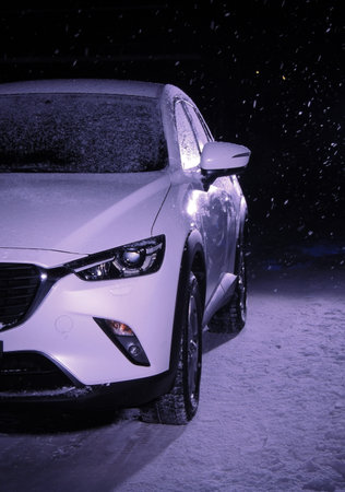 GDYNIA, POLAND - Jan 04, 2020: Parked new car on a parking place by night.