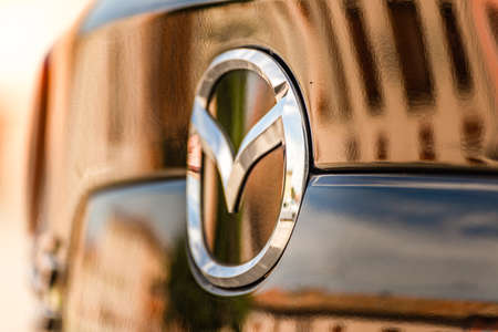 LUGO, ITALY - September 11, 2018: light enlightening MAZDA logo on a car body