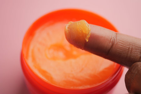 Close up of man hand using petroleum jelly