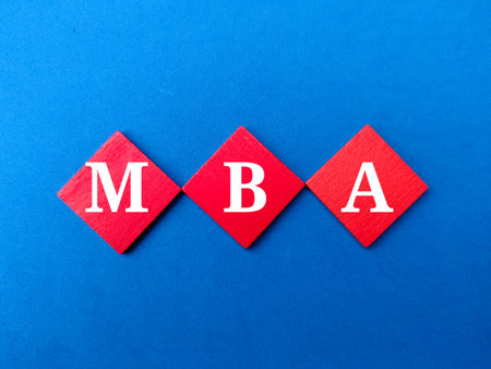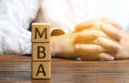 Wooden blocks with the word MBA - Master of Business Administration. Degree of professionalism in business management. Accounting, human resources, applied statistics, communication, ethics