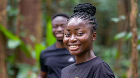 African couple shares a moment of genuine laughter surrounded by nature