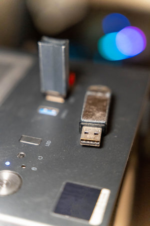 a USB stick in front of a USB port