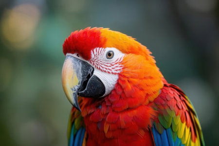 Beautiful Scarlet Macaw parrot portrait. (Ara macao) bright red, yellow, and blue plumage