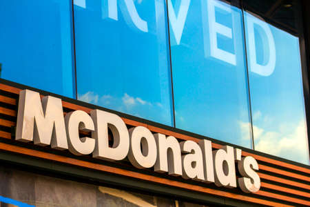 AYIA NAPA, CYPRUS - JANUARY 21: McDonalds Restaurant logo in Ayia Napa, Cyprus. The McDonalds Corporation is the worlds largest chain of hamburger fast food restaurants.