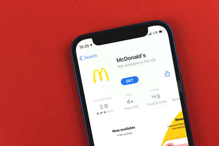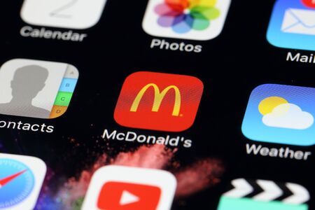 Kharkov, Ukraine - April 2, 2021: McDonald's app on Apple iPhone screen close-up